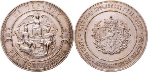 Ústřední hospodářská společnost pro Království české b.l., Sign., Punc., Ag900, 52mm, 65.074g (tlustý odražek), úhozy na hraně !, vlas.rysky, patina R!