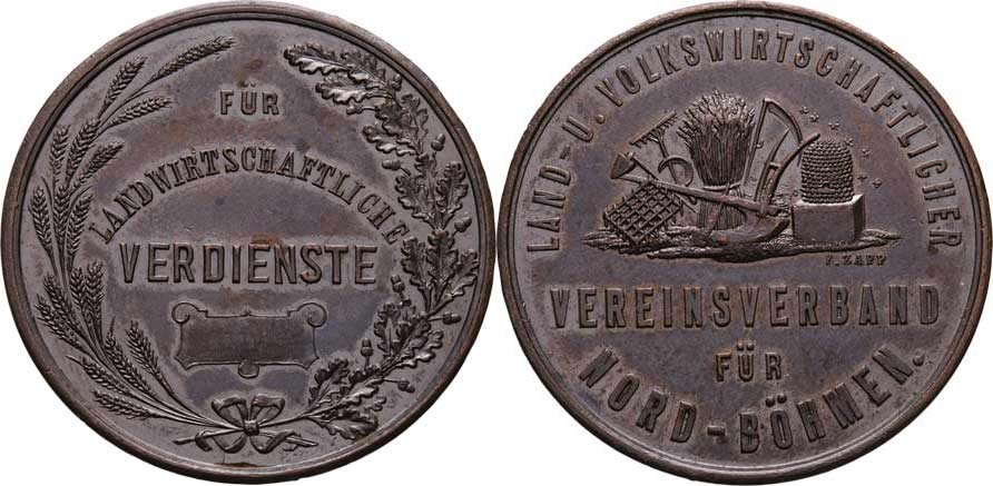 Severočeský hospodářský německý svaz - Zásluze (1885) - hospodář.atributy, německý nápis a opis / německý nápis ve věnci, Sign., bronz 40 mm, pěkná pat., téměř