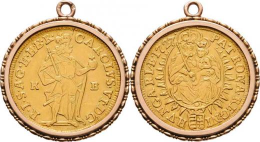 Dukát 1727 KB, Kremnica, Hal.551, Husz.1585, 5.284g, v ozdobném rámečku s ouškem, dr.škr., patina