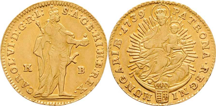 Dukát 1739 KB, Kremnica, Hal.552, Husz.1586, 3.462g, nep.hr., nep.rysky, pěkná patina