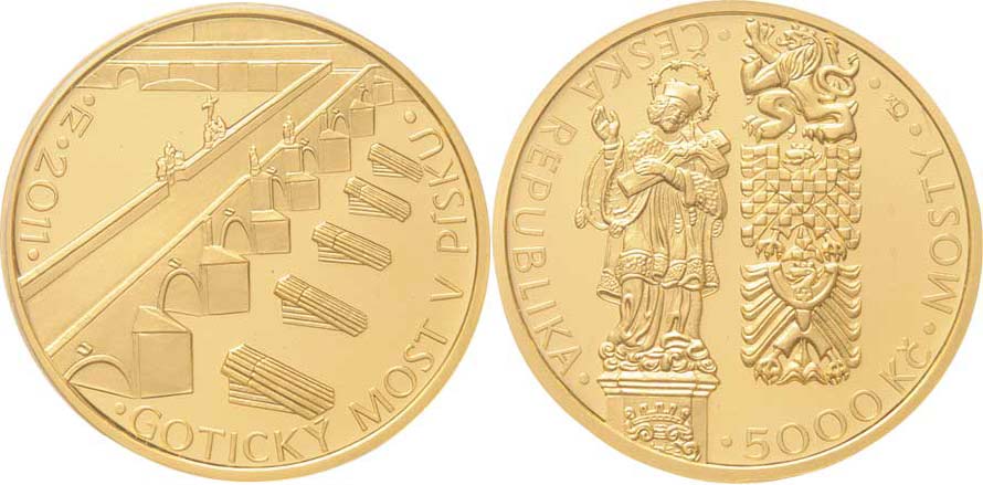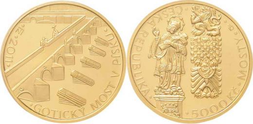5000 Koruna (1/2 Unce) 2011 - Gotický most v Písku, KM.124 (Au999, 6.900ks, 15.55g), kapsle, etue, karta