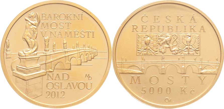 5000 Koruna (1/2 Unce) 2012 - Barokní most v Náměšti nad Oslavou, KM.132 (Au999, 3.200ks), 15.591g, kapsle