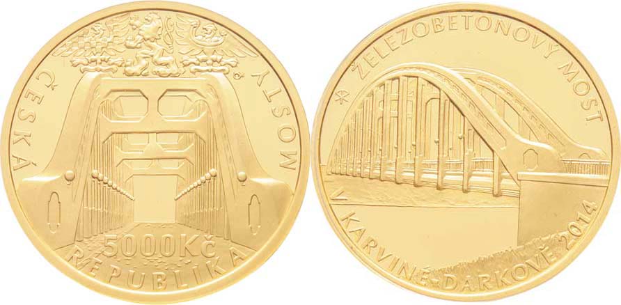 5000 Koruna 2014 - Železobetonový most v Karviné - Darkově (Au999, 15.55g, 6500ks), kapsle, etue, karta