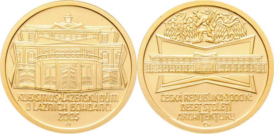 2000 Koruna 2005 - Lázeňský dům v Lázních Bohdaneč, KM.87 (Au999, 1.997ks), 6.228g, karta