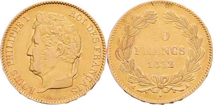 40 Frank 1832 A, Paříž, KM.747.1 (Au900, pouze 22.000 ks), 12.824g, dr.hr.ražbou, dr.rysky, pěkná patina R!