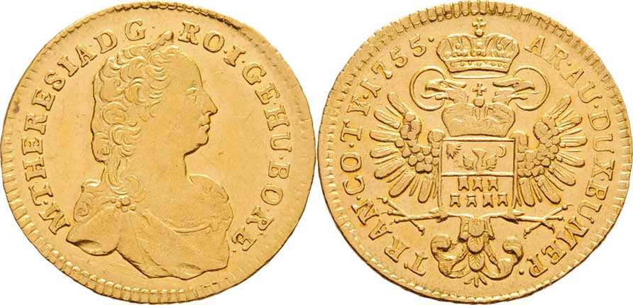 Dukát 1755, Karlovský Bělehrad, N.115, KM.610, 3.475g, nep.hr., nep.rysky R!