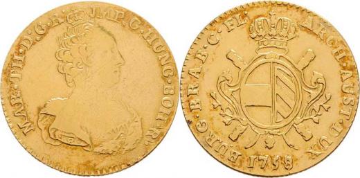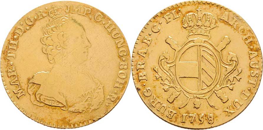 2 Sovráno 1758, Brusel, N.154, KM.24, 10.464g, okrájený, upravená hrana, škr., rysky, pěkná patina
