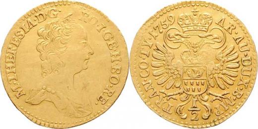 1/2 Dukát 1759, Karlovský Bělehrad, N.116, KM.625, 1.718g, nep.nedor., nep.hr., nep.rysky, patina R!