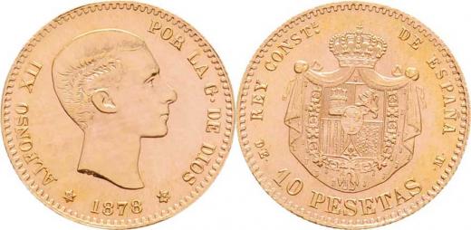 10 Peseta 1878/1962 DE-M - novoražba, KM.677 (Au900, pouze 18.000 ks), 3.228g, nep.hr.