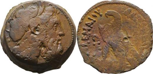 AE 28 mm, Zeus Amón zprava / sedící orel zleva, opis, podobný jako SG.7916, podobný jako Noe.283, 16.306g, nedor., pěkná patina R!