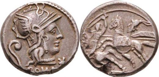 AR Denár, hlava Romy zprava, lituus, nápis "ROMA.X." / souboj dvou jezdců, nápis "C.SERVEIL.", Alb.1002, Crawford.264/1, dr.úhoz, pěkná patina