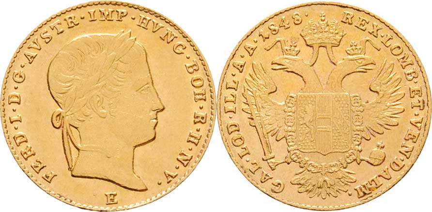 Dukát 1848 E, Karlovský Bělehrad, 3.454g, nep.hr., nep.rysky, pěkná patina