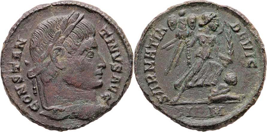 AE3, Rv:"SARMATIA.DEVICTA.", S.3780, RIC.48 - Sirmium - dílna jediná - ražba z let 324 - 325, patina R!
