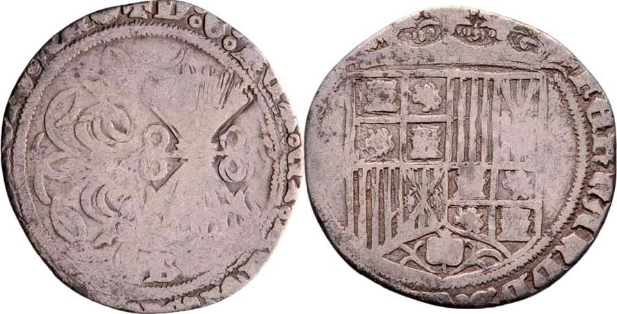 Šípový reál b.l., minc. Burgos, De Wit.III.3513, Cayon.2624-2626, 2.268g, okrájený, nedor., patina R!