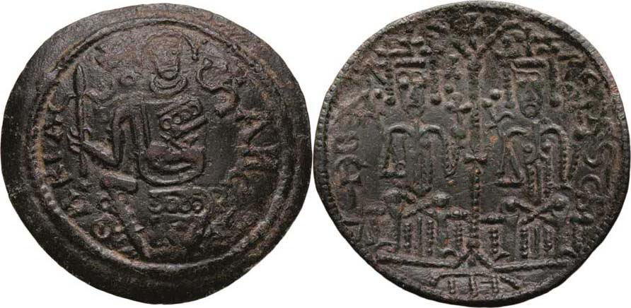 AE miskov. mince byzanckého typu, Husz.72, Unger.122, RBS.478, 3.048g, pěkná patina, téměř
