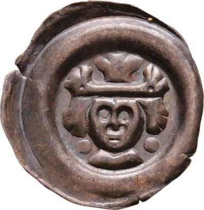 Brakteát moravský, Ca.952, F.XXXII/5 (2374), 0.439g, nep.exc., pěkná tmavá patina