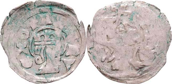 Denár moravský, Ca.973, F.XXXII/11 (2385), 0.354g, nedor., patina R!