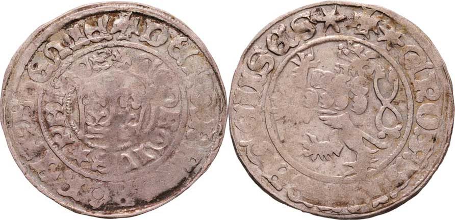Pražský groš, Há.I.a/8 - varianta - písmeno N v opisu reversu bez příčky (jako u typu I.a/5), 2.773g, nedor., pěkná patina