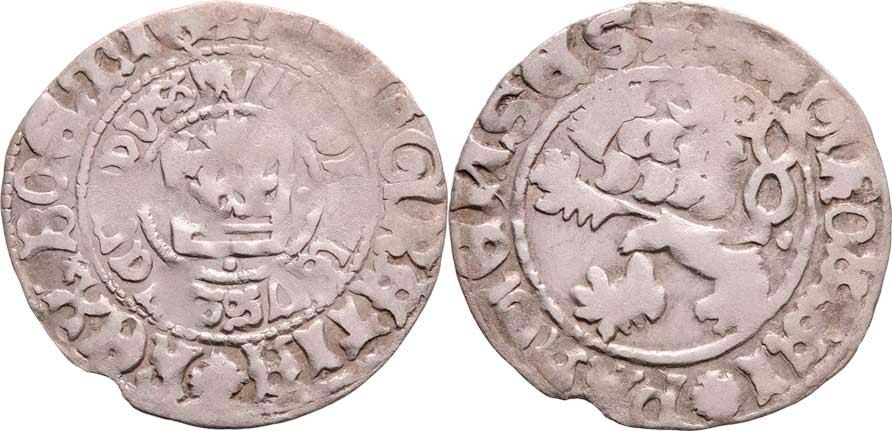 Pražský groš, Kutná Hora - Blažek Dráb, Há.XII.c/1 (tři tečky kolem koruny), 2.670g, nep.exc., nedor., nep.okr., pěkná patina