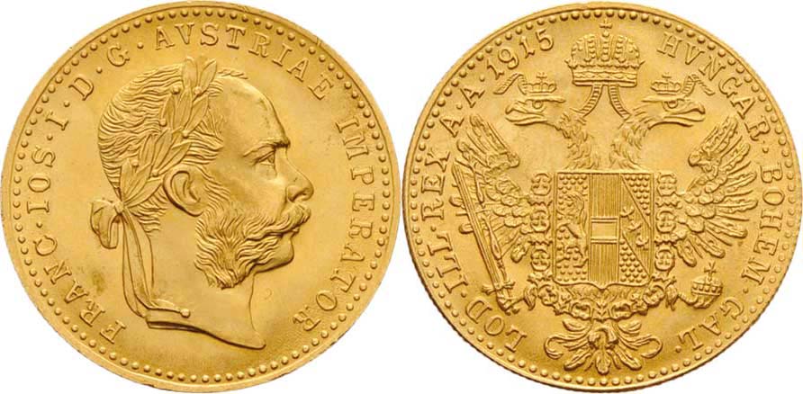 Dukát 1915 - novoražba, 3.487g, skvrnka