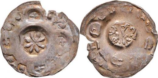 Fenik b.l. (cca 1220-1300), Fry.B.Cheb.35, Há.34, Cn3.X/31, 0.747g, nep.nedor., vylomený okraj, pěkná patina
