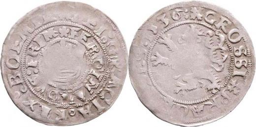 Pražský groš 1536, K.Hora-Jeptiška, Chv.C13/c.K, královská koruna s tečkami, J.4, MKČ.70, 2.898g, nep.nedor., nep.dvojráz, pěkná patina