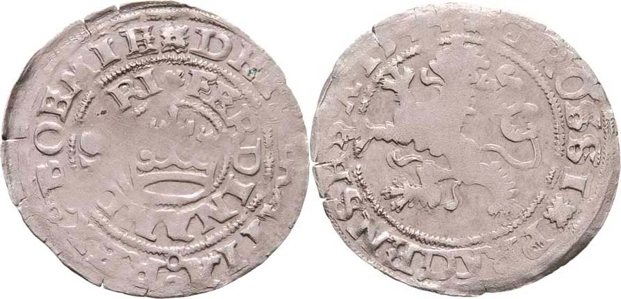 Pražský groš 1544, K.Hora-Hubáček, Chv.9/a.K, královská koruna, podobný jako J.4, MKČ.71, 2.423g, dr.vady materiálu na hraně, nedor.