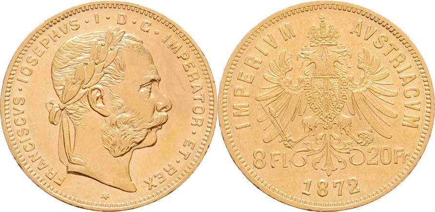 8 Zlatník 1872 (pouze 5.185 ks), 6.427g, nep.hr., dr.škr., vl.rysky RR!