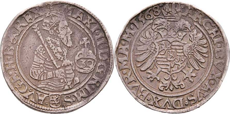 30 Krejcar 1568, Jáchymov-Geitzköfler, J.6b, MKČ.212, 11.961g, stopa po oušku, dr.vady materiálu, patina R!