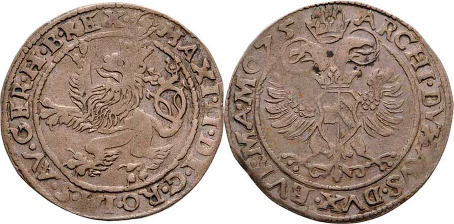 Bílý groš (15)75, Jáchymov-Geitzköfler, J.14d, MKČ.238, 1.973g, nep.nedor., pěkná patina, téměř