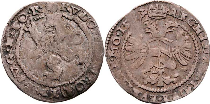 Bílý groš 1583, K.Hora-Šatný, J.13a, MKČ.376, 1.858g, nedor., nep.dvojráz, pěkná patina