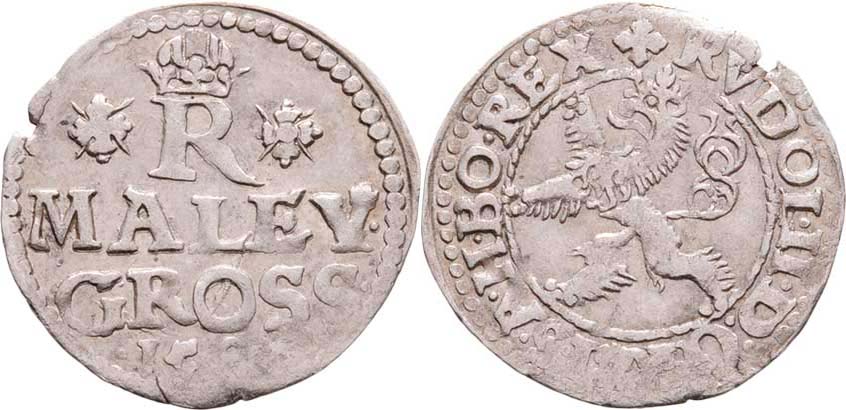Malý groš 1589, Praha-Ercker, HN.31 (opis 6e), nápis " MALEY ./ GROSS ./. 1589 .", 0.860g, dr.vada materiálu na hraně, nep.nedor., pěkná patina