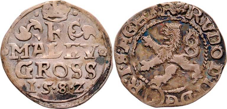 Malý groš 1582, K.Hora-Šatný, HN.2b (opis 7e), nápis "* MALEY */ GROSS / 1.5.8.2 ", 0.930g, nedor., patina