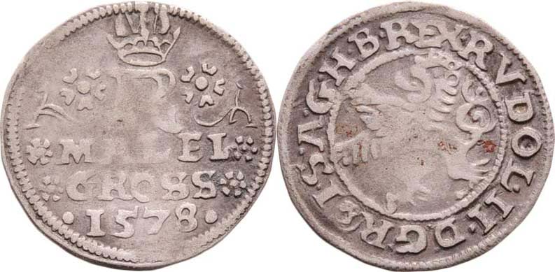 Malý groš 1578, Č.Budějovice-Gebhart, HN.2a (7c), nápis "* MALEI */* GROSS */. 1578 .", 1.051g, nedor., patina RR!
