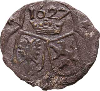 1/2 Krejcar 1627, K.Hora-Hölzl, J.28d, MKČ.820, 0.415g, nep.prohnutý, nep.nedor., tmavá patina R!