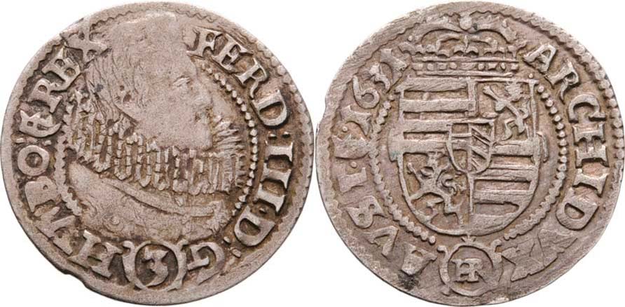 3 Krejcar 1631 PH, Petr Hemma, NŠ.116, MKČ.1335, 1.744g, nep.nedor., pěkná patina, téměř