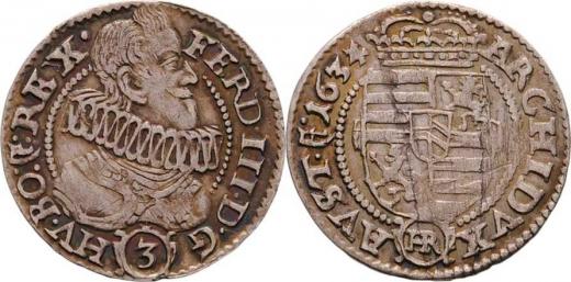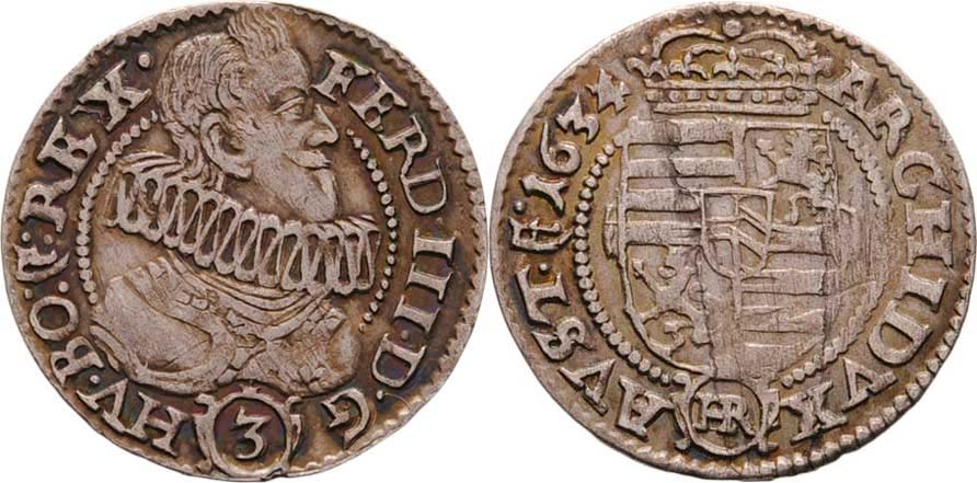 3 Krejcar 1634 HR, Hans Rössner, NŠ.122, MKČ.1335, 1.517g, vada materiálu, pěkná patina