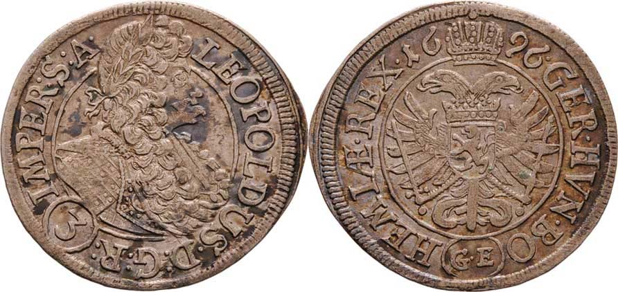 3 Krejcar 1696, Praha-Egerer, Nech.205, MKČ.1428, 1.759g, nep.exc., skvrny, patina