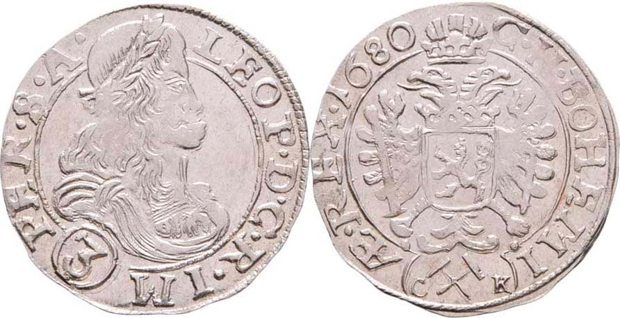 3 Krejcar 1680 CK, K.Hora-Krahe, Nech.296, MKČ.1454, 1.794g, nep.nedor.