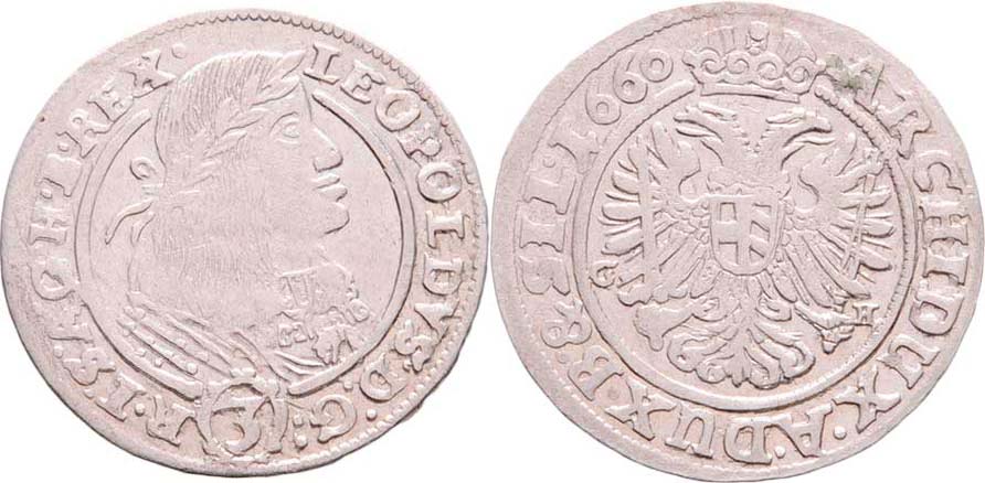 3 Krejcar 1660, Vratislav-Hübner, Nech.728, MKČ.1616, 1.738g, nep.skvrnka
