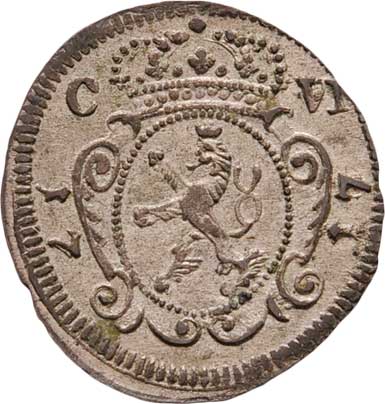 1/2 Krejcar 1717, Praha-Scharff, J.4c, MKČ.1844, 0.605g, nep.exc., krásná patina, téměř