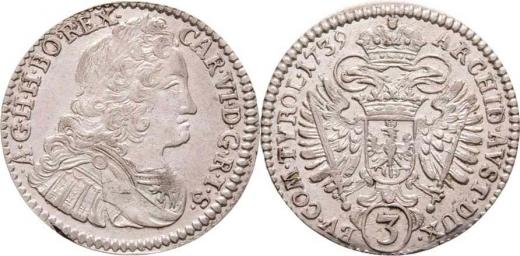 3 Krejcar 1739, Hall, M-A.239, 1.663g, pěkná patina