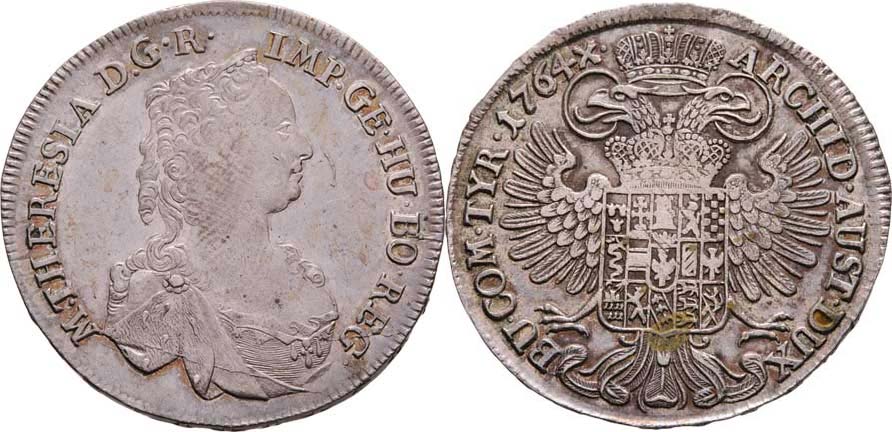 1/2 Tolar 1764, Hall, N.28, M-A.265, 13.999g, nep.nedor., nep.vada razidla, nep.just., pěkná patina