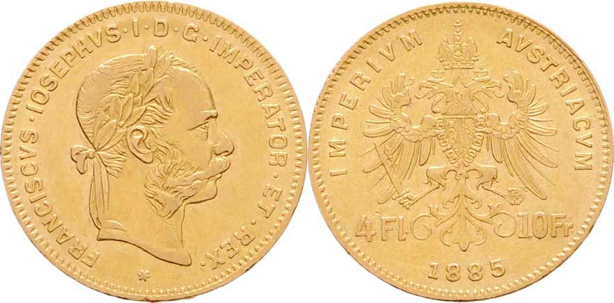 4 Zlatník 1885 (pouze 38.000 ks), 3.201g, nep.hr., nep.rysky, pěkná patina R!