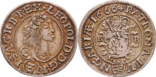 3 Krejcar 1666 KB, Nech.1209, Husz.1465, 1.670g, nep.nedor., pěkná patina