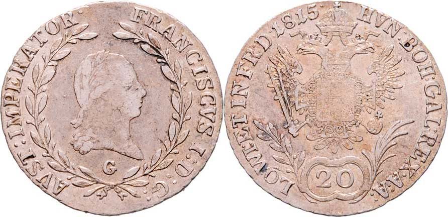 20 Krejcar 1815 G, Nagybanya, 6.459g, dr.hr., dr.rysky, patina R!