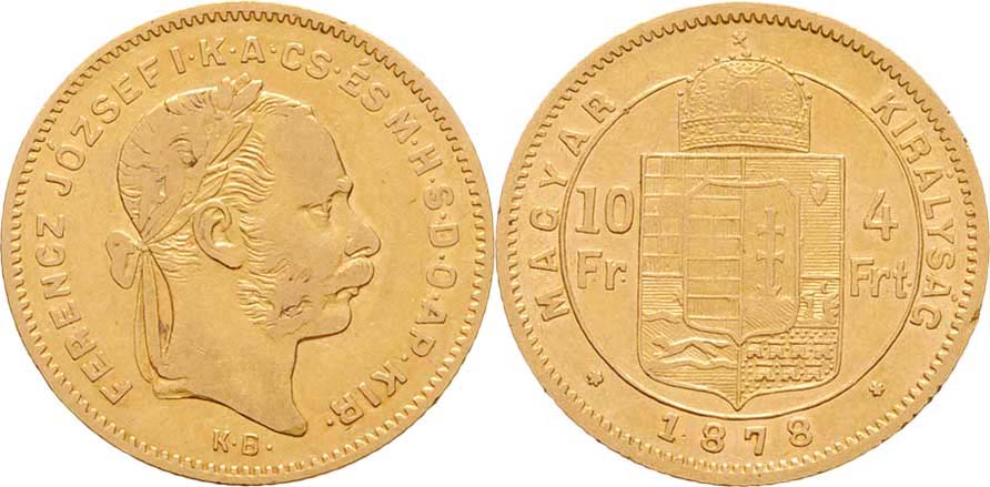 4 Zlatník 1878 KB (pouze 15.000 ks), 3.182g, nep.hr., nep.rysky, pěkná patina R!