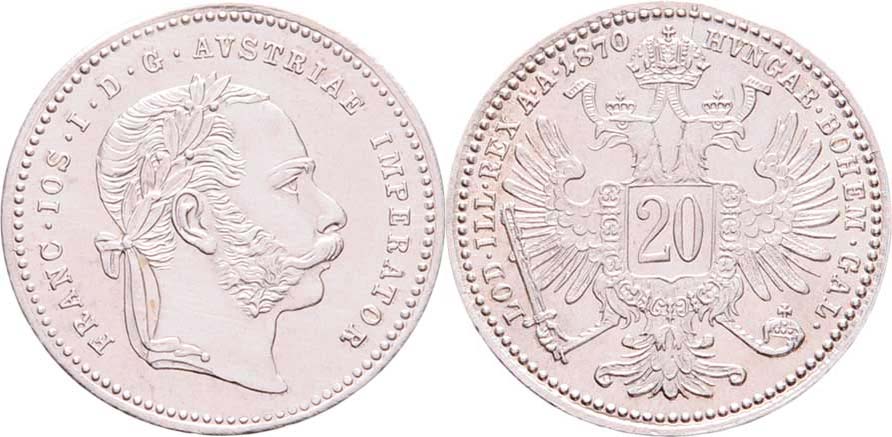 20 Krejcar 1870, 2.638g
