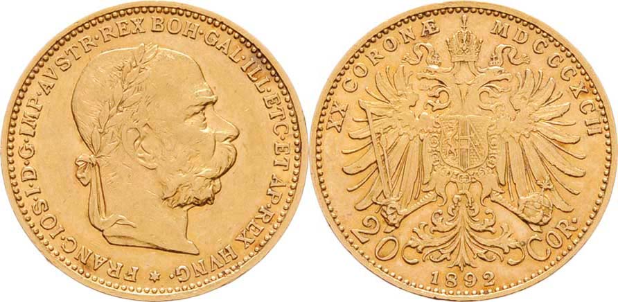 20 Koruna 1892, 6.759g, nep.hr., nep.rysky, pěkná patina