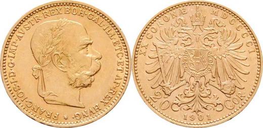 20 Koruna 1901 (pouze 49.000 ks), 6.767g, nep.hr., nep.rysky, téměř R!
